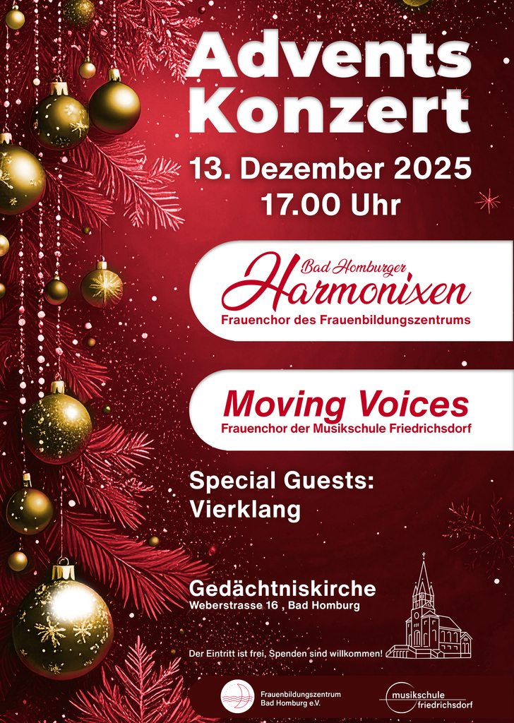 Bad Homburger Frauenchor "Harmonixen" - 01 Dezember 2025 Nützliche Smartphone-Apps für den Urlaub - 05 Dezember 2025 ENTSPANNUNG MIT KLANG 4 - 05 Dezember 2025 Individuelles Make-Up - Dein perfekter Look 2 (Warteliste) - 06 Dezember 2025 Bad Homburger Frauenchor "Harmonixen" - 08 Dezember 2025 ERZÄHLABEND „ZAUBERHAFTER ADVENT“ - 12 Dezember 2025 Adventskonzert - 13 Dezember 2025DAS TEAM